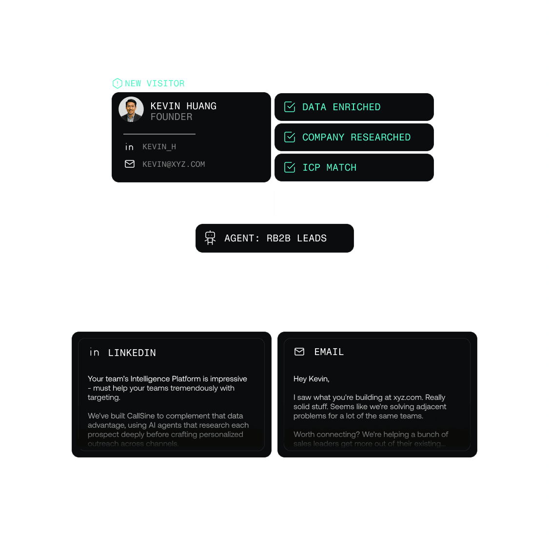 CallSine connects every intent signal to orchestrated outreach—turning data into action the instant it’s discovered.